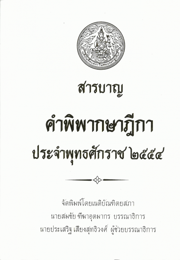 สารบาญคำพิพากษาฎีกา ประจำพุทธศักราช 2554 / จัดพิมพ์โดยเนติบัณฑิตยสภา ; สมชัย ฑีฆาอุตมากร บรรณาธิการ ; ประเสริฐ เสียงสุทธิวงศ์ ผู้ช่วยบรรณาธิการ [book]