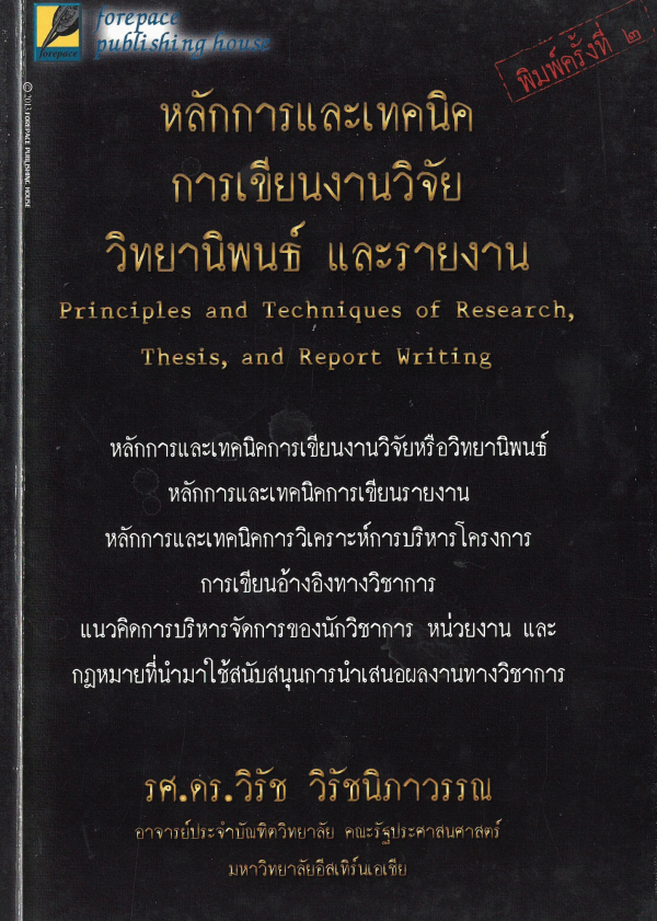 หลักการและเทคนิคการเขียนงานวิจัย วิทยานิพนธ์ และรายงาน / วิรัช วิรัชนิภาวรรณ