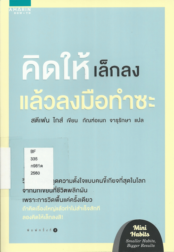 คิดให้เล็กลง แล้วลงมือทำซะ = Mini habits, smaller habits, bigger results / Stephen Guise, เขียน ; กัณฑ์อนก จารุรักษา, แปล.