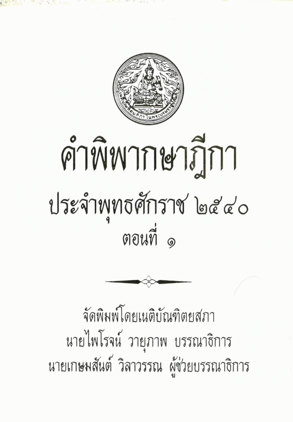 คำพิพากษาฎีกา ประจำพุทธศักราช 2540 ตอนที่ ... / จัดพิมพ์โดยเนติบัณฑิตยสภา ; ไพโรจน์ วายุภาพ บรรณาธิการ ; เกษมสันต์ วิลาวรรณ ผู้ช่วยบรรณาธิการ