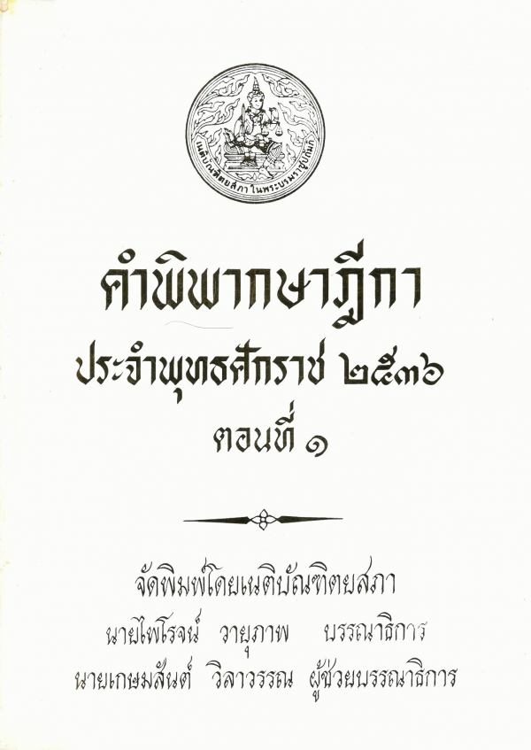 คำพิพากษาฎีกา ประจำพุทธศักราช 2536 ตอนที่ ... / จัดพิมพ์โดยเนติบัณฑิตยสภา ; ไพโรจน์ วายุภาพ บรรณาธิการ ; เกษมสันต์ วิลาวรรณ ผู้ช่วยบรรณาธิการ