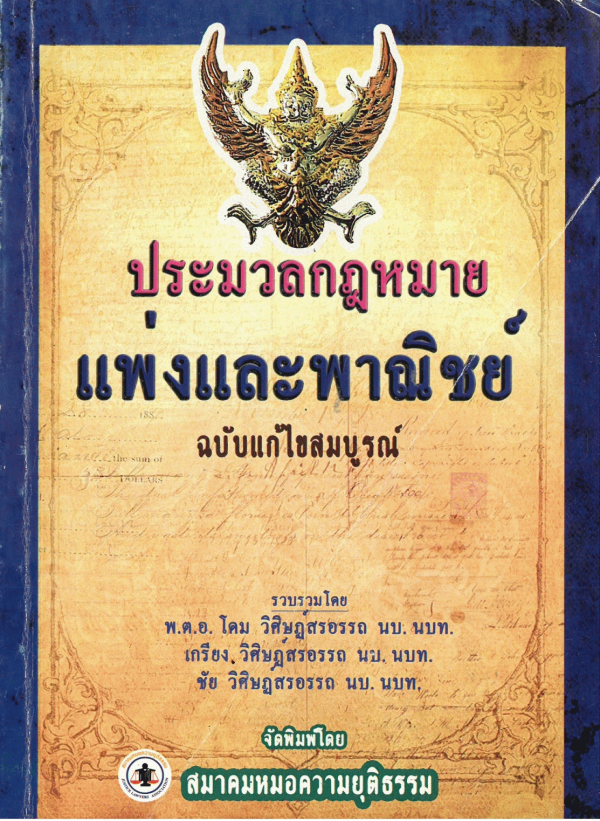 ประมวลกฎหมายแพ่งและพาณิชย์ ฉบับแก้ไขสมบูรณ์ / โดม วิศิษฏ์สรอรรถ เกรียง วิศิษฎ์สรอรรถ, ชัย วิศิษฎ์สรอรรถ.