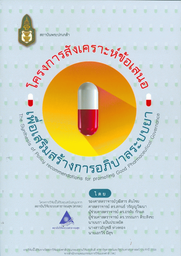 โครงการสังเคราะห์ข้อเสนอเพื่อเสริมสร้างการอภิบาลระบบยา = The synthesis of policy recommendations for promoting good pharmaceutical governance / วุฒิสาร ตันไชย นักวิจัยหัวหน้าโครงการ