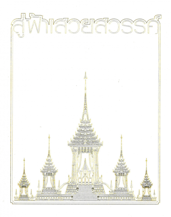 คติสัญลักษณ์ของพระเมรุมาศ หน้า 8-47 -- ความพิเศษของพระเมรุมาศ รัชกาลที่ 9 หน้า 48-115 -- ภูมิทัศน์นอกราชวัติและโครงการพระราชดำริ หน้า 116-145 -- พระเมรุมาศ รัชกาลที่ 9 หน้า 146-149 -- ลานอุตราวัฏ หน้า 150-178 -- ชั้นชาลาที่ 1 หน้า 179-186 -- ชั้นชาลาที่ 2 หน้า 187-193 -- ชั้นชาลาที่ 3 หน้า 194-195 -- พระเมรุมาศบุษบกประธาน (ชั้นชาลาที่ 4) หน้า 196-233 -- พระที่นั่งทรงธรรม หน้า 234-263 -- ศาลาลูกขุน ทับเกษตร และทิม หน้า 264-283