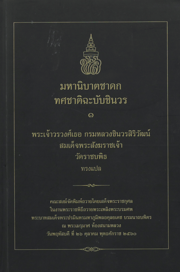 มหานิบาตชาดก : ทศชาติฉะบับชินวร ๑ / พระเจ้าวรวงศ์เธอกรมหลวงชินวรสิริวัฒน์ สมเด็จพระสังฆราชเจ้า ทรงแปล