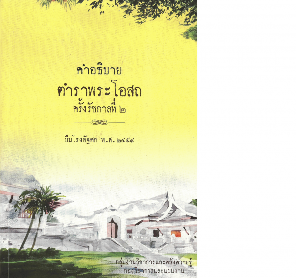คำอธิบายตำราพระโอสถครั้งรัชกาลที่ 2 บืมโรงอัฐศก พ.ศ. 2459 / กลุ่มงานวิชาการและคลังความรู้ กองวิชาการและแผนงาน กรมการแพทย์แผนไทยและการแพทย์ทางเลือก กระทรวงสาธารณสุข ; บรรณาธิการ, รัชนี จันทร์เกษ, มนนิภา สังข์ศักดา, สุภัททรา รังสิมาการ