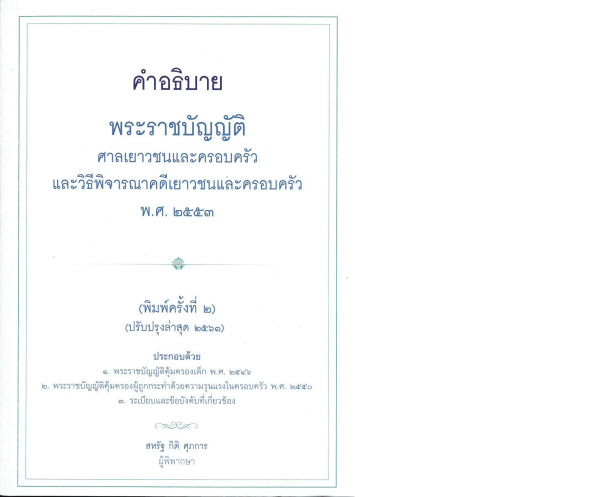 คำอธิบายพระราชบัญญัติศาลเยาวชนและครอบครัวและวิธีพิจารณาคดีเยาวชนและครอบครัว พ.ศ. 2553 / สหรัฐ กิติ ศุภการ