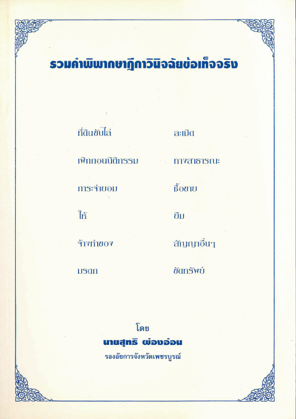 รวมคำพิพากษาฎีกาวินิจฉัยข้อเท็จจริง / สุทธิ ผ่องอ่อน