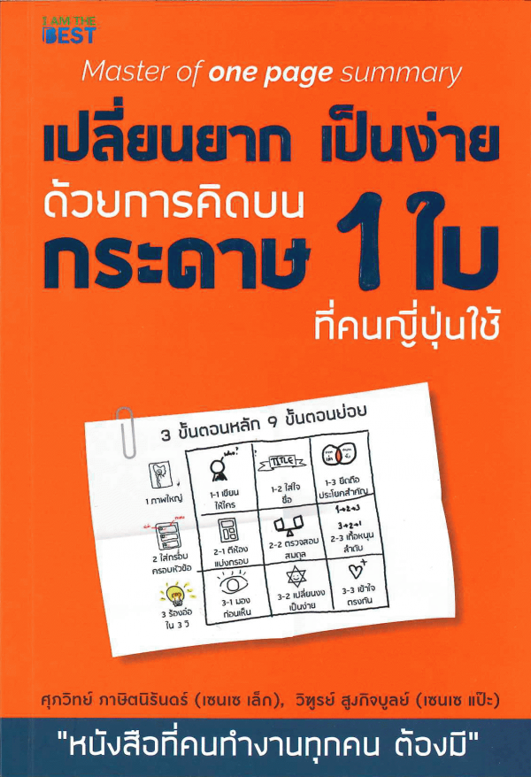 เปลี่ยนยากเป็นง่าย ด้วยการคิดบนกระดาษ 1 ใบ ที่คนญี่ปุ่นใช้ = Master of one page summary / ศุภวิทย์ ภาษิตนิรันดร์ และวิฑูรย์ สูงกิจบูลย์