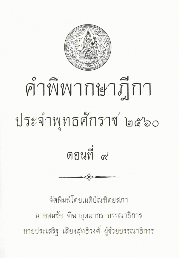 คำพิพากษาฎีกา ประจำพุทธศักราช 2560 ตอนที่ 9 / จัดพิมพ์โดยเนติบัณฑิตยสภา ; สมชัย ฑีฆาอุตมากร บรรณาธิการ ; ประเสริฐ เสียงสุทธิวงศ์ ผู้ช่วยบรรณาธิการ