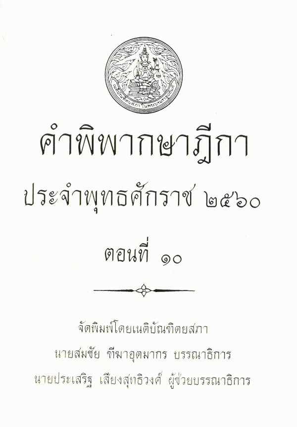 คำพิพากษาฎีกา ประจำพุทธศักราช 2560 ตอนที่ 10 / จัดพิมพ์โดยเนติบัณฑิตยสภา ; สมชัย ฑีฆาอุตมากร บรรณาธิการ ; ประเสริฐ เสียงสุทธิวงศ์ ผู้ช่วยบรรณาธิการ