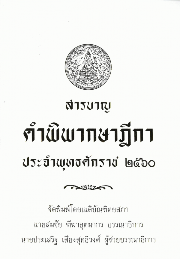 สารบาญคำพิพากษาฎีกา ประจำพุทธศักราช 2560 / จัดพิมพ์โดยเนติบัณฑิตยสภา ; สมชัย ฑีฆาอุตมากร บรรณาธิการ ; ประเสริฐ เสียงสุทธิวงศ์ ผู้ช่วยบรรณาธิการ