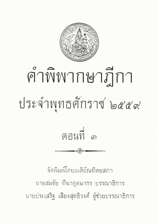 คำพิพากษาฎีกา ประจำพุทธศักราช 2559 ตอนที่ 3 / จัดพิมพ์โดยเนติบัณฑิตยสภา ; สมชัย ฑีฆาอุตมากร บรรณาธิการ ; ประเสริฐ เสียงสุทธิวงศ์ ผู้ช่วยบรรณาธิการ