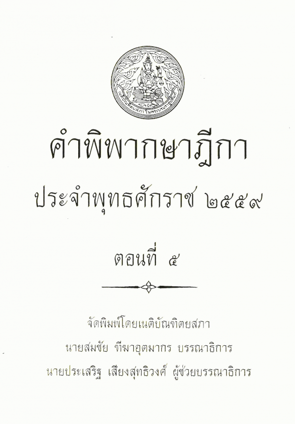 คำพิพากษาฎีกา ประจำพุทธศักราช 2559 ตอนที่ 5 / จัดพิมพ์โดยเนติบัณฑิตยสภา ; สมชัย ฑีฆาอุตมากร บรรณาธิการ ; ประเสริฐ เสียงสุทธิวงศ์ ผู้ช่วยบรรณาธิการ