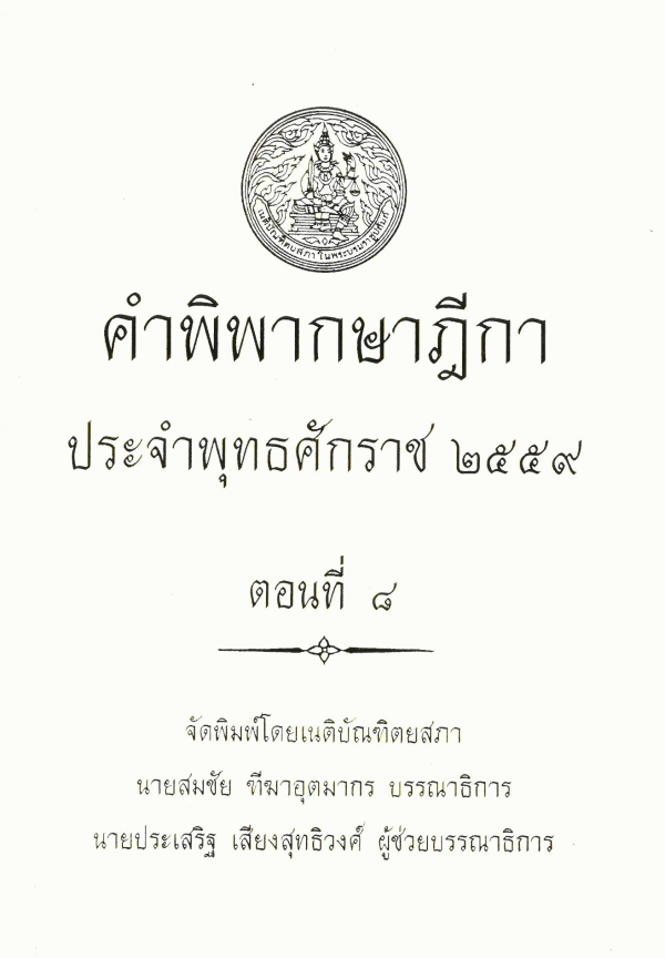 คำพิพากษาฎีกา ประจำพุทธศักราช 2559 ตอนที่ 8 / จัดพิมพ์โดยเนติบัณฑิตยสภา ; สมชัย ฑีฆาอุตมากร บรรณาธิการ ; ประเสริฐ เสียงสุทธิวงศ์ ผู้ช่วยบรรณาธิการ