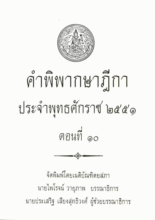 คำพิพากษาฎีกา ประจำพุทธศักราช 2551 ตอนที่ 10 / จัดพิมพ์โดยเนติบัณฑิตยสภา ; สมชัย ฑีฆาอุตมากร บรรณาธิการ ; ประเสริฐ เสียงสุทธิวงศ์ ผู้ช่วยบรรณาธิการ