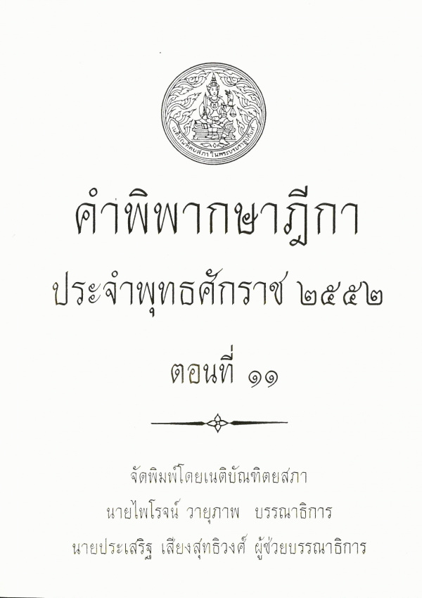 คำพิพากษาฎีกา ประจำพุทธศักราช 2552 ตอนที่ 11 / จัดพิมพ์โดยเนติบัณฑิตยสภา ; สมชัย ฑีฆาอุตมากร บรรณาธิการ ; ประเสริฐ เสียงสุทธิวงศ์ ผู้ช่วยบรรณาธิการ