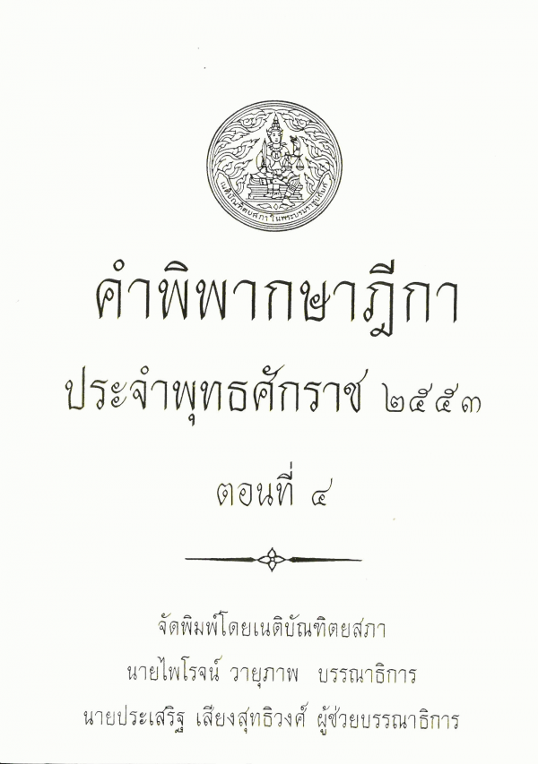 คำพิพากษาฎีกา ประจำพุทธศักราช 2553 ตอนที่ 4 / จัดพิมพ์โดยเนติบัณฑิตยสภา ; สมชัย ฑีฆาอุตมากร บรรณาธิการ ; ประเสริฐ เสียงสุทธิวงศ์ ผู้ช่วยบรรณาธิการ