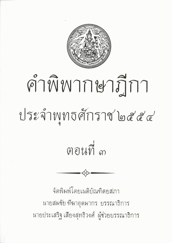 คำพิพากษาฎีกา ประจำพุทธศักราช 2554 ตอนที่ 3 / จัดพิมพ์โดยเนติบัณฑิตยสภา ; สมชัย ฑีฆาอุตมากร บรรณาธิการ ; ประเสริฐ เสียงสุทธิวงศ์ ผู้ช่วยบรรณาธิการ