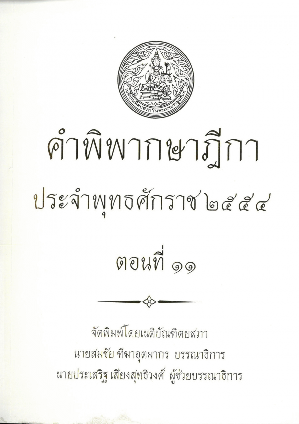 คำพิพากษาฎีกา ประจำพุทธศักราช 2554 ตอนที่ 10 / จัดพิมพ์โดยเนติบัณฑิตยสภา ; สมชัย ฑีฆาอุตมากร บรรณาธิการ ; ประเสริฐ เสียงสุทธิวงศ์ ผู้ช่วยบรรณาธิการ