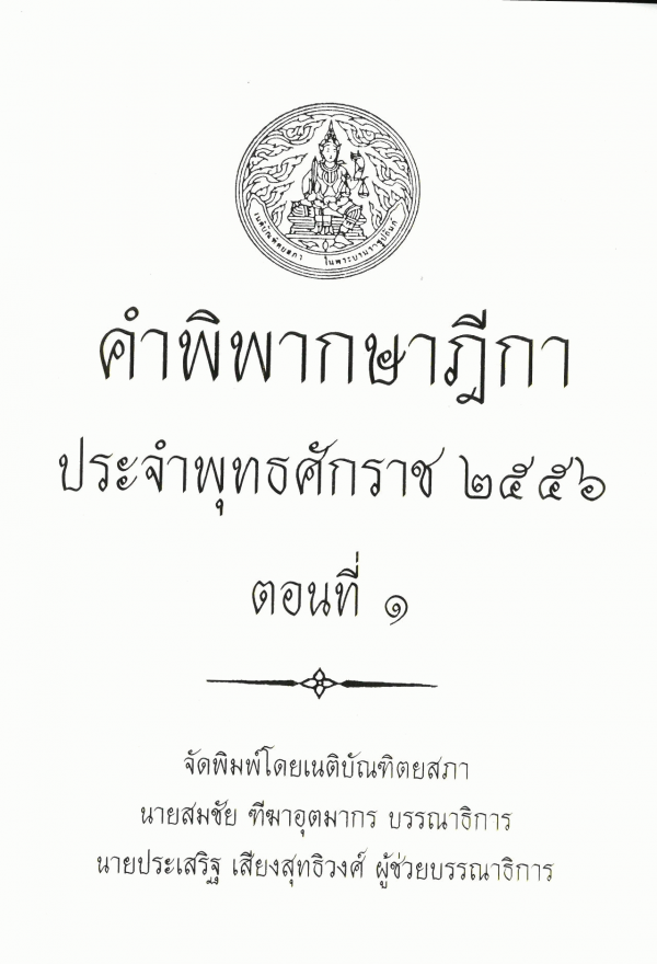คำพิพากษาฎีกา ประจำพุทธศักราช 2556 ตอนที่ 1 / จัดพิมพ์โดยเนติบัณฑิตยสภา ; สมชัย ฑีฆาอุตมากร บรรณาธิการ ; ประเสริฐ เสียงสุทธิวงศ์ ผู้ช่วยบรรณาธิการ