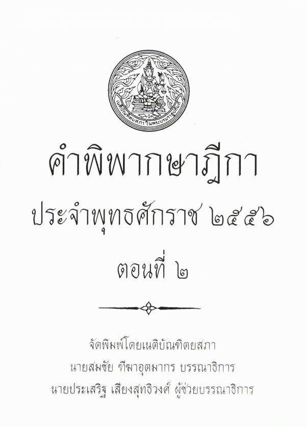คำพิพากษาฎีกา ประจำพุทธศักราช 2556 ตอนที่ 2 / จัดพิมพ์โดยเนติบัณฑิตยสภา ; สมชัย ฑีฆาอุตมากร บรรณาธิการ ; ประเสริฐ เสียงสุทธิวงศ์ ผู้ช่วยบรรณาธิการ