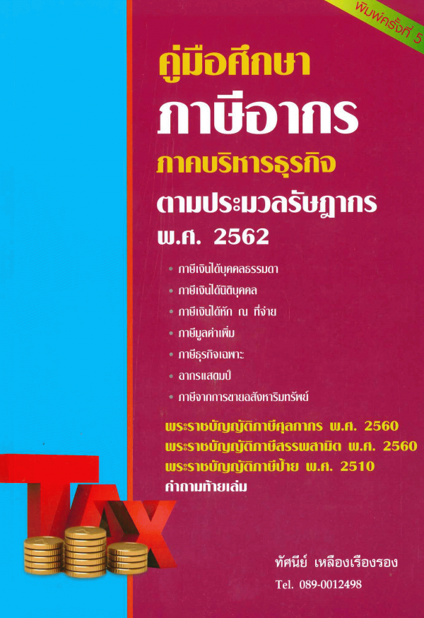 คู่มือศึกษาภาษีอากร ภาคบริหารธุรกิจ ตามประมวลรัษฎากร พ.ศ. 2562 พระราชบัญญัติภาษีศุลกากร พ.ศ. 2560 พระราชบัญญัติภาษีสรรพสามิต พ.ศ. 2560 พระราชบัญญัติภาษีป้าย พ.ศ. 2510 / ทัศนีย์ เหลืองเรืองรอง