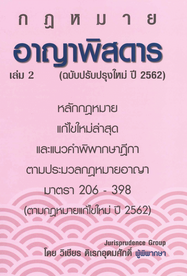 - ชื่อเรื่องปกหน้า กฎหมายอาญาพิสดาร เล่ม 2 (ฉบับปรับปรุงใหม่ ปี 2562) หลักกฎหมายแก้ไขใหม่ล่าสุด และแนวคำพิพากษาฎีกา ตามประมวลกฎหมายอาญา มาตรา 206-398 (ตามกฎฆมายแก้ไขใหม่ ปี 2562)