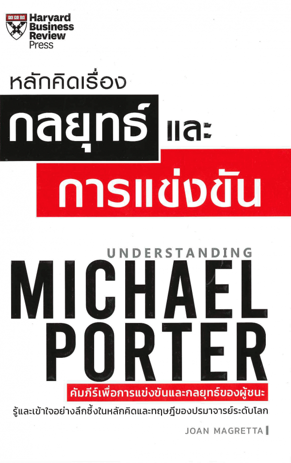 รู้และเข้าใจอย่างลึกซึ้ง ถึงแก่นความคิดอันเฉียบคมของ "Michael E. Porter" ปรมาจารย์ระดับโลก "เรื่องกลยุทธ์และการแข่งขัน" ที่ผู้บริหารและผู้นำองค์กรสามารถนำไปปฏิบัติจริงอย่างได้ผล ไม่ว่าจะเป็น หลักการที่สำคัญของห่วงโซ่คุณค่า พลังผลักดัน 5 ประการ ความได้เปรียบในการแข่งขัน การสร้างมูลค่าเพิ่ม การเลือกในแบบที่ได้อย่างเสียอย่าง และแนวคิดใหม่เกี่ยวกับบททดสอบ 5 ประการของกลยุทธ์ที่ดี ที่จะเป็นพื้นฐานอันสำคัญยิ่งต่อการที่องค์กรจะบรรลุความสำเร็จและมุ่งสู่ชัยชนะได้ในทุกสถานการณ์ หนังสือเล่มนี้เหมาะที่จะเป็นคู่มือสำหรับผู้บริหาร คนทำงาน รวมถึงผู้ที่กำลังศึกษา MBA ทุกคน