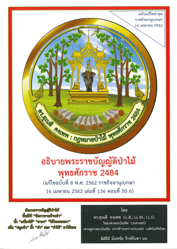 - ชื่อเรื่องแกหน้า อธิบายพระราชบัญญัติป่าไม้ พุทธศักราช 2484 (แก้ไขฉบับที่ 8 พ.ศ. 2562 ราชกิจจานุเบกษา 16 เมษายน 2562 เล่มที่ 136 ตอนที่ 50 ก)