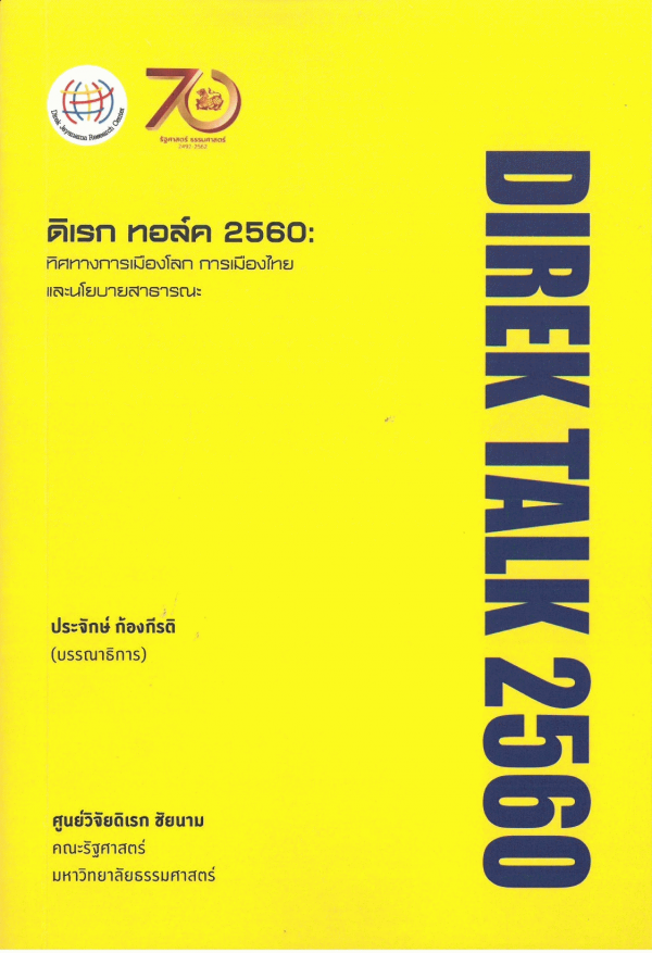 Direk talk 2560 ทิศทางการเมืองโลก การเมืองไทย และนโยบายสาธารณะ / ศูนย์วิจัยดิเรก ชัยนาม คณะรัฐศาสตร์ มหาวิทยาลัยธรรมศาสตร์