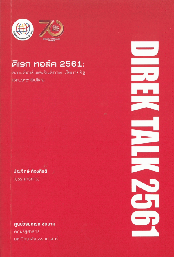 Direk talk 2561 ความขัดแย้งและสันติภาพ นโยบายรัฐ และประชาธิปไตย / ศูนย์วิจัยดิเรก ชัยนาม คณะรัฐศาสตร์ มหาวิทยาลัยธรรมศาสตร์