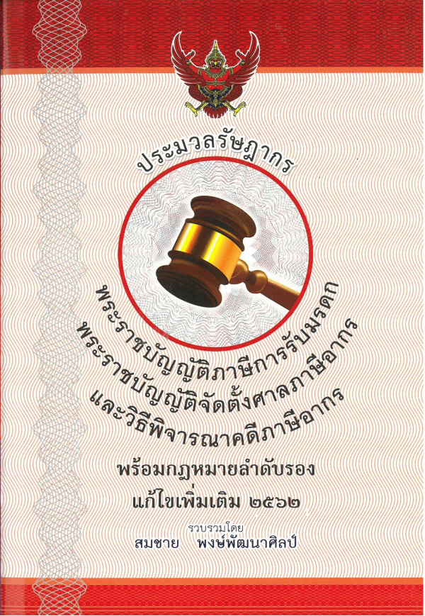 ประมวลรัษฎากรพระราชบัญญัติภาษีการรับมรดก พระราชบัญญัติจัดตั้งศาลภาษีอากรและวิธีพิจารณาคดีภาษีอากรพร้อมกฎหมายลำดับรอง แก้ไขเพิ่มเติม 2562 / สมชาย พงษ์พัฒนาศิลป์