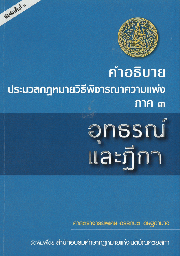คำอธิบายประมวลกฎหมายวิธีพิจารณาความแพ่ง ภาค 3 อุทธรณ์และฎีกา / อรรถนิติ ดิษฐอำนาจ