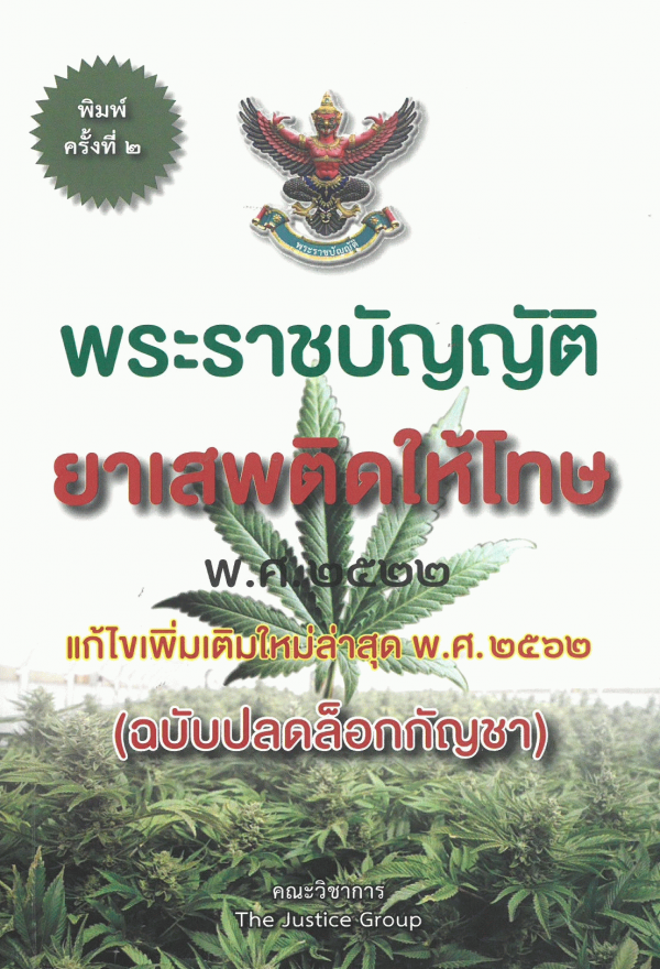 พระราชบัญญัติยาเสพติดให้โทษ พ.ศ. 2522 (แก้ไขใหม่ล่าสุด พ.ศ. 2562) (ฉบับปลดล็อคกัญชา) พร้อม กฎกระทรวง ประกาศกระทรวงเกี่ยวกับพระราชบัญญัติยาเสพติดให้โทษ ตัวอย่างคำขอรับใบอนุญาตครอบครองยาเสพติดให้โทษ พระราชบัญญัติวัตถุที่ออกฤทธิ์ต่อจิตและประสาท พ.ศ.2559 / คณะวิชาการ The Justice Group