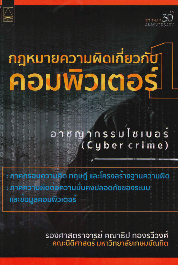 กฎหมายความผิดเกี่ยวกับคอมพิวเตอร์ เล่ม 1 : ภาคกรอบแนวคิด ทฤษฎี และโครงสร้างฐานความผิด ภาคความผิดต่อความมั่นคงปลอดภัยของระบบและข้อมูลคอมพิวเตอร์ / คณาธิป ทองรวีวงศ์