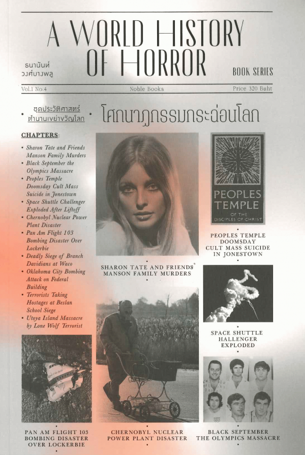 ฆาตกรรมหมู่ดาราสาว ซารอน เทต และเพื่อนๆ หน้า 15-50 -- กลุ่มก่อการร้ายปาเลสไตน์สังหารหมู่นักกีฬาชาวยิว หน้า 51-88 -- อัตวินิบาตกรรมหมู่ สมาชิกลัทธิ พีเพิลส์ เทมเปิล หน้า 89-124 -- หายนะภัยด้านอวกาศของกระสวยอวกาศ แซลเลนเจอร์ หน้า 125-158 -- มหัตภัยการระเบิดของโรงไฟฟ้านิวเคลียร์ เชอร์โนบิล หน้า 159-184 -- ผู้ก่อการร้ายลอบวางระเบิด แพน แอม เที่ยวบินที่ 103 หน้า 185-206 -- การปิดล้อมอันนองเลือด ลัทธิ บรานซ์ เดวิเดียนส์ ที่วาโก หน้า 207-244 -- เหตุการณ์ลอบวางระเบิดศูนย์ราชการเมืองโอคลาโฮมา หน้า 245-282 -- กลุ่มก่อการร้ายเซเซน จับตัวประกันที่เบสลัน รัสเซีย หน้า 283-302 -- การโจมตีค่ายเยาวชนที่เกาะอูโทยา นอร์เวย์ หน้า 303