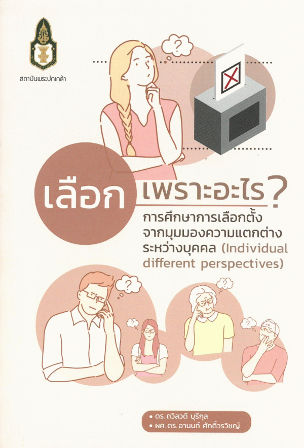 ลือกเพราะอะไร? การศึกษาการเลือกตั้งจากมุมมองความแตกต่างระหว่างบุคคล (Individual Different Perspective) / ถวิลวดี บุรีกุล, อานนท์ ศักดิ์วรวิชญ์ ; บรรณาธิการ