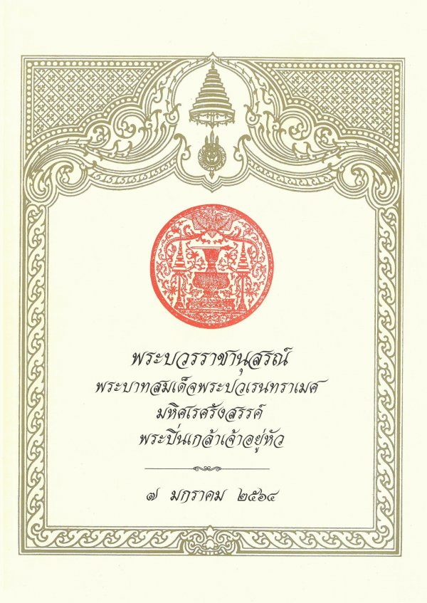 TextPublication details: กรุงเทพฯ : บริษัท จันวาณิชย์ ซีเคียวริตี้พริ้นติ้ง จำกัด, 2564Notes: หนังสือที่ระลึกวันตรงกับเสด็จสวรรคต ในพระบาทสมเด็จฯ พระปิ่นเกล้าเจ้าอยู่หัว 7 มกราคม 2564