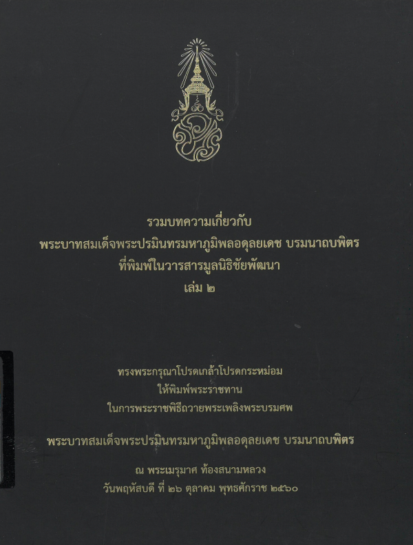 ทรงพระกรุณาโปรดเกล้าโปรดกระหม่อมให้พิมพ์พระราชทานในการพระราชพิธีถวายพระเพลิงพระบรมศพ พระบาทสมเด็จพระปรมินทรมหาภูมิพลอดุลยเดช บรมนาถบพิตร ณ พระเมรุมาศ ท้องสนามหลวง วันพฤหัสบดีที่ 26 ตุลาคม พุทธศักราช 2560