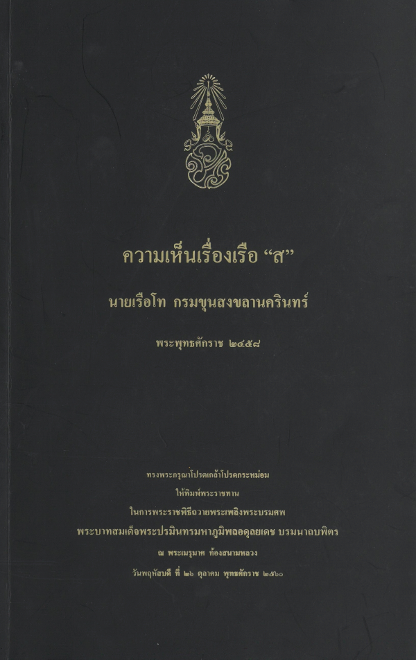 ความเห็นเรื่องเรือ "ส" นายเรือโท กรมขุนสงขลานครินทร์ พระพุทธศักราช 2458 / สำนักพระราชวัง