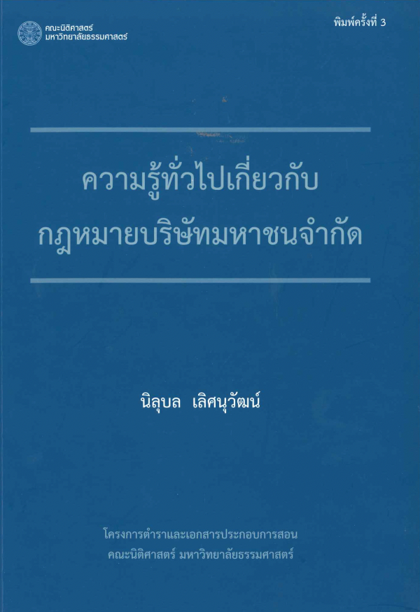 ความรู้ทั่วไปเกี่ยวกับกฎหมายบริษัทมหาชนจำกัด / นิลุบล เลิศนุวัฒน์