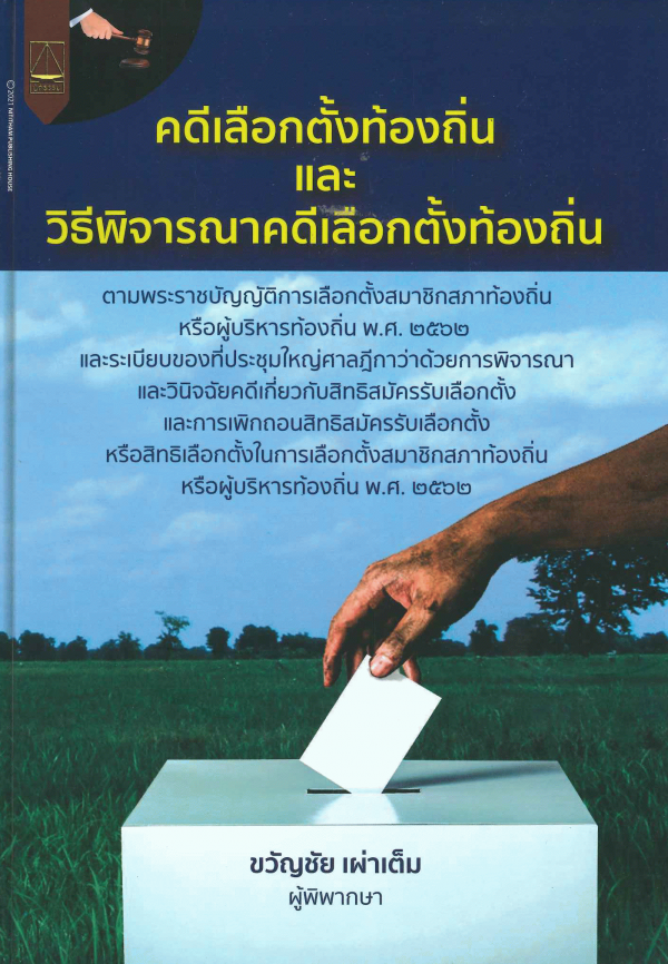 การจัดการเลือกตั้งสมาชิกสภาท้องถิ่นหรือผู้บริหารท้องถิ่น หน้า 5-24 -- การวินิจฉัยสิทธิสมัครรับเลือกตั้งสมาชิกสภาท้องถิ่นหรือผู้บริหารท้องถิ่นของคณะกรรมการการเลือกตั้ง หน้า 25-34 -- การสืบสวน การไต่สวน และการวินิจฉัยชี้ขาดของคณะกรรมการการเลือกตั้ง หน้า 35-57 -- วิธีพิจารณาคดีเลือกตั้งท้องถิ่นในศาลอุทธรณ์หรือศาลอุทธรณ์ภาค หน้า 58-61 -- บททั่วไป หน้า 62-73 -- การพิจารณาและวินิจฉัยคดีเกี่ยวกับสิทธิสมัครรับเลือกตั้งกรณีอุทธรณ์คำวินิจฉัยของคณะกรรมการการเลือกตั้งที่ให้ถอนชื่อออกจากบัญชีรายชื่อผู้สมัคร หน้า 74-93 -- การพิจารณาและวินิจฉัยคดีเกี่ยวกับการขอให้ศาลสั่งให้มีการเลือกตั้งใหม่ หรือเพิกถอนสิทธิสมัครรับเลือกตั้งหรือสิทธิเลือกตั้ง หน้า 94-114 -- คำสั่งวินิจฉัยชี้ขาด หน้า 115-117 -- การพิจารณาและวินิจฉัยค่าใช้จ่ายสำหรับการเลือกตั้ง หน้า 118-119 -- คดีเกี่ยวกับการเลือกตั้งสมาชิกสภาท้องถิ่นหรือผู้บริหารท้องถิ่น หน้า 120-121 -- คดีเกี่ยวกับสิทธิสมัครรับเลือกตั้ง หน้า 122-183 -- คดีเกี่ยวกับการขอให้ศาลสั่งให้มีการเลือกตั้งใหม่หรือเพิกถอนสิทธิสมัครรับเลือกตั้งหรือสิทธิเลือกตั้ง หน้า 184-244 -- คดีแพ่งเกี่ยวกับค่าใช้จ่ายในการเลือกตั้ง หน้า 245-249 -- คดีอาญาเกี่ยวกับการเลือกตั้งท้องถิ่น หน้า 250-298 -- คดีฟอกเงินเกี่ยวกับการเลือกตั้งท้องถิ่น หน้า 299-303 -- ภาคผนวก หน้า 304-556