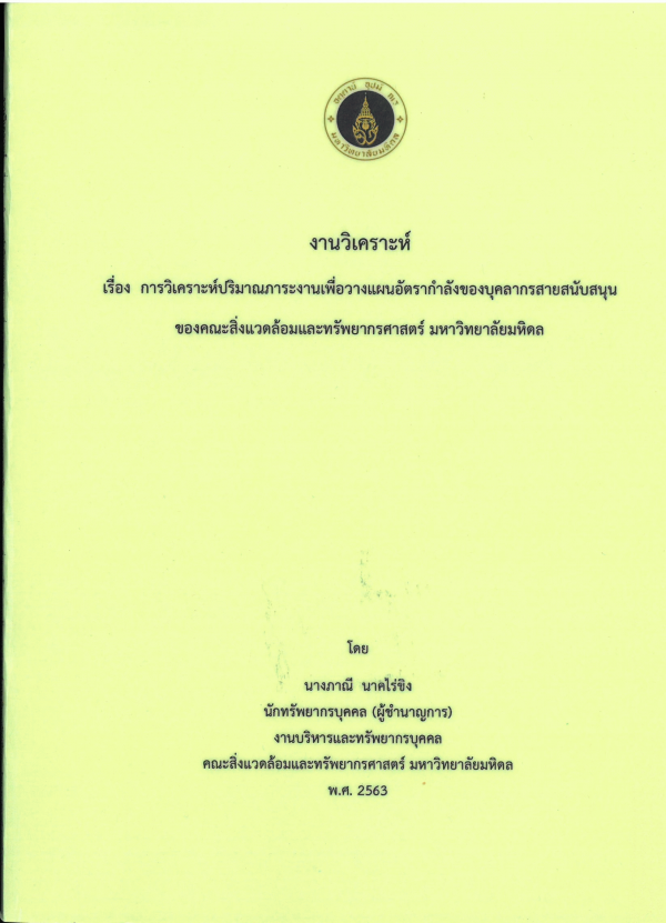 งานวิเคราะห์ เรื่อง การวิเคราะห์ปริมาณภาระงานเพื่อวางแผนอัตรากำลังของบุคลากรสายสนับสนุนของคณะสิ่งแวดล้อมและทรัพยากรศาสตร์ มหาวิทยาลัยมหิดล / ภาณี นาคไร่ขิง