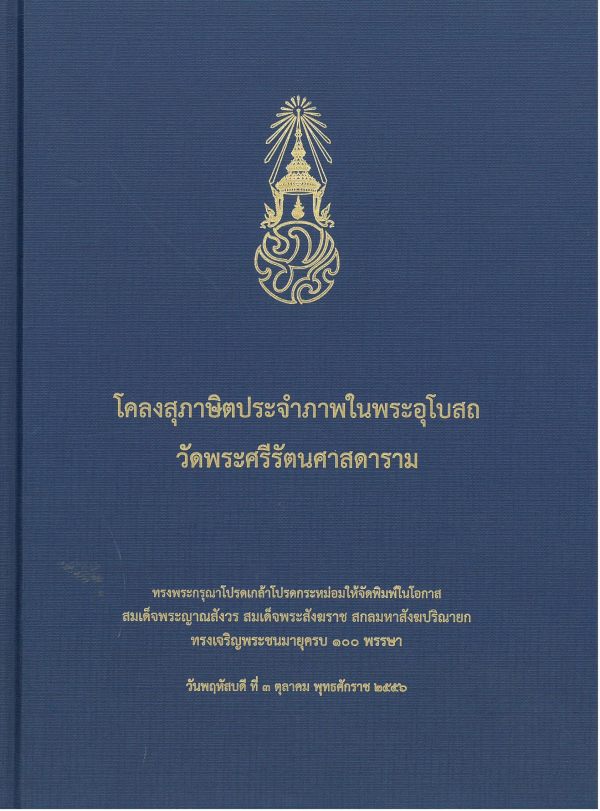ทรงพระกรุณาโปรดเกล้าโปรดกระหม่อมให้จัดพิมพ์ในโอกาสสมเด็จพระญาณสังวร สมเด็จพระสังฆราช สกลมหาสังฆปรินายก ทรงเจริญพระชนมายุครบ 100 พรรษา วันพฤหัสบดีที่ 3 ตุลาคม 2556