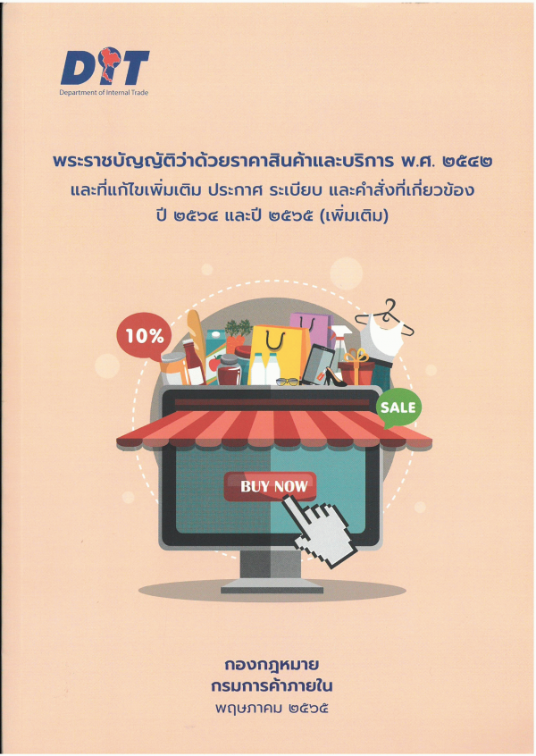 พระราชบัญญัติว่าด้วยราคาสินค้าและบริการ พ.ศ. 2542 และที่แก้ไขเพิ่มเติม ประกาศ ระเบียบ และคำสั่งที่เกี่ยวข้อง ปี 2564 และปี 2565 (เพิ่มเติม) / กองกฎหมาย กรมการค้าภายใน