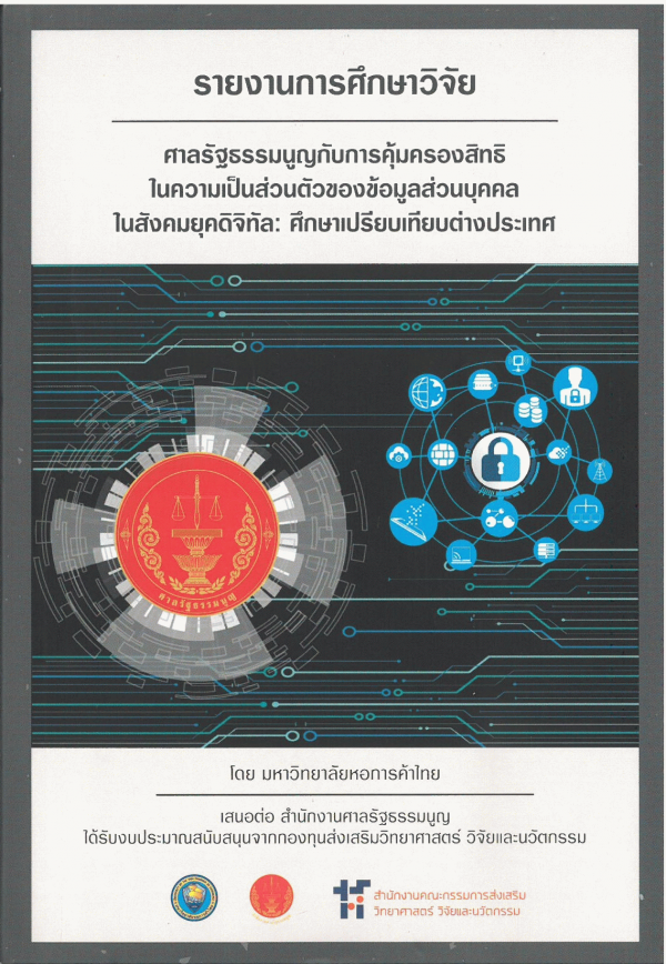 รายงานการศึกษาวิจัย เรื่อง "ศาลรัฐธรรมนูญกับการคุ้มครองสิทธิในความเป็นส่วนตัวของข้อมูลส่วนบุคคลในสังคมยุคดิจิทัล : ศึกษาเปรียบเทียบต่างประเทศ" / กลุ่มงานวิจัยและพัฒนากฎหมายรัฐธรรมนูญ สถาบันรัฐธรรมนูญศึกษา สำนักงานศาลรัฐธรรมนูญ, มหาวิทยาลัยหอการค้าไทย