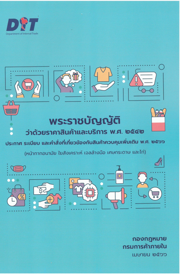 พระราชบัญญัติว่าด้วยราคาสินค้าและบริการ พ.ศ. 2542 และที่แก้ไขเพิ่มเติม ประกาศ ระเบียบ และคำสั่งที่เกี่ยวข้องกับสินค้าควบคุมเพิ่มเติม พ.ศ. 2566 (หน้ากากอนามัย ใยสังเคราะห์ เจลล้างมือ เศษกระดาษ และไก่) / กองกฎหมาย กรมการค้าภายใน