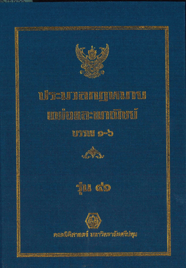 ประมวลกฎหมายแพ่งและพาณิชย์ บรรพ 1 หลักทั่วไป -- บรรพ 2 หนี้ -- บรรพ 3 เอกเทศสัญญา -- บรรพ 4 ทรัพย์สิน -- บรรพ 5 ครอบครัว -- บรรพ 6 มรดก