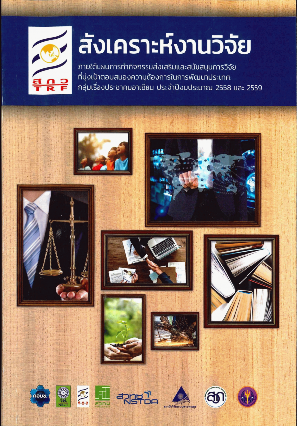 สังเคราะห์งานวิจัยภายใต้แผนการทำกิจกรรมส่งเสริมและสนับสนุนการวิจัยที่มุ่งเป้าตอบสนองความต้องการในการพัฒนาประเทศ กลุ่มเรื่องประชาคมอาเซียน ประจำปีงบประมาณ 2558 และ 2559 / อิศรา ศานติศาสน์ และคณะ…